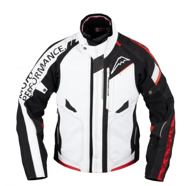 リップストップ×杢調がミックスされた独自のプレミアムな素材を採用した簡易防水ジャケットです。 上下ツートンデザインを新採用し、よりアウトドアウエアな配色を積極採用しています。 背中には開閉式エアダクトを装備しています。軽量で長時間着用しても疲れにくく、 普段使いはもちろんロングツーリングにも最適です。 脱着式防寒インナーの中綿には軽く保温性の高い3Mシンサレートフェザーレス綿を採用しています。 ●素材:【アウター】〈表〉ナイロン75% ポリエステル25% (TPUラミネーション/初期耐水圧10,000mm、透湿性10,000g/㎡/24h) 〈裏〉ポリエステル100%(メッシュ) 【インナー】〈表〉ポリエステル100% 〈別布〉ナイロン100%〈裏〉ナイロン100% 〈中綿〉ポリエステル100%3Mシンサレート™フェザーレス ●カラー:①ホワイト/ネイビー ②ダークレッド/ブルー③ネイビー/ブラック④オリーブ/ブラック ●サイズ:M、L、L/XL、LL、XL *走行中は、フードをタブに止めて着用してください。 *掲載画像はサンプルのため、実際の商品と色味や仕様が異なる場合がございます。 本商品にはプロテクターが付属していません。別売にてお好きな組み合わせをお選びいただけます。 オンラインショップの商品は実店舗でも販売しているため、ご注文確定後でもタイミングにより在庫がない場合がございます。できる限りそのようなことがないよう管理しておりますが、予めご了承下さい。