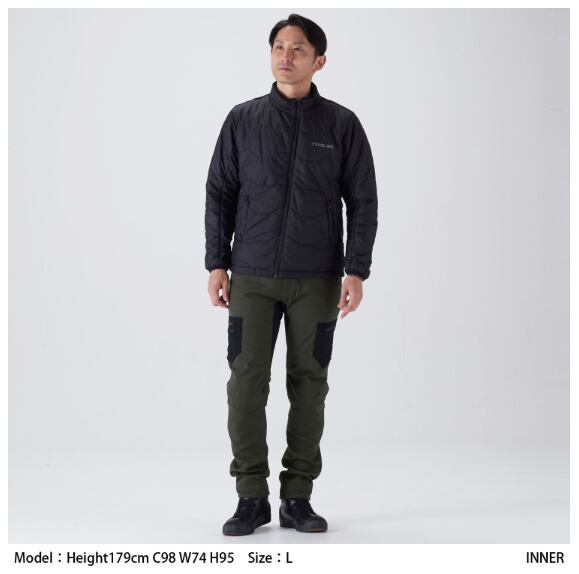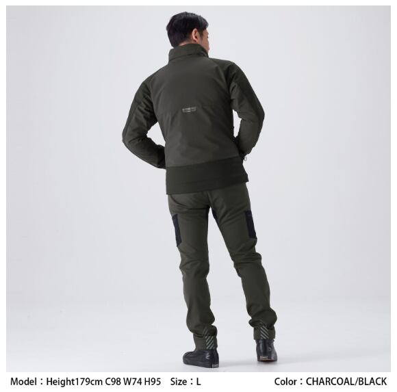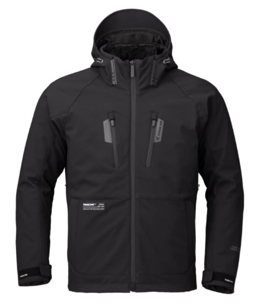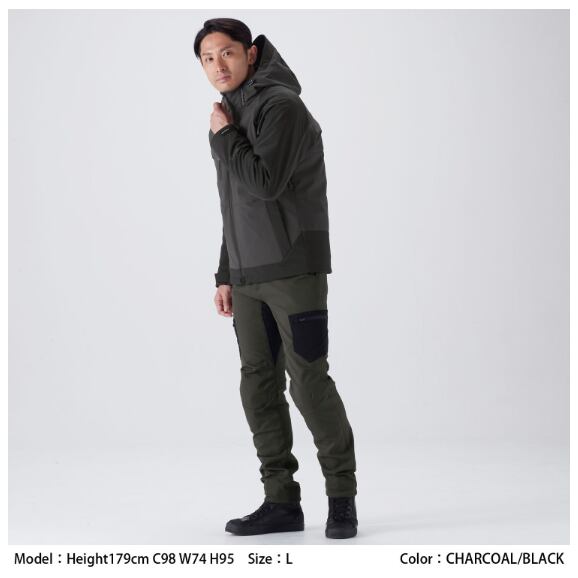 保温性と着心地に優れたソフトシェル生地を採用。フードは着脱式で、シーンやスタイルにあわせた着こなしが可能です。 カジュアルなデザインながら、肩・肘にはCE レベル2のプロテクターを装備し、高い安全性を確保しています。