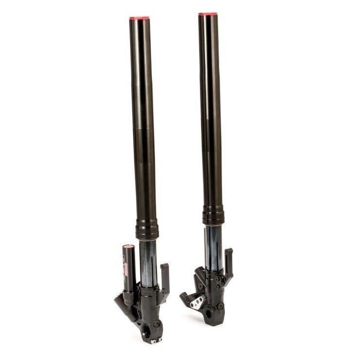 インナーチューブ径は純正フォークが41mmなのに対して43mmと大径で、当然剛性アップ。