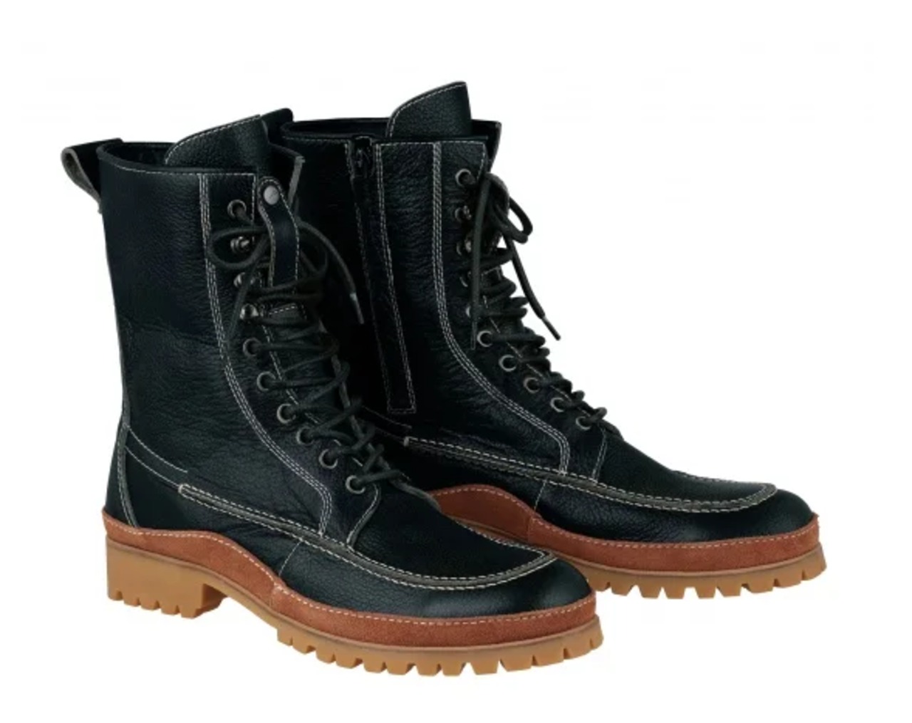 メンテナンス性に優れた撥水革のモカシンブーツ。モカ部分のベロア革と配色ステッチが効いています。内側のファスナーが脱ぎ履きをアシスト。脱着式チェンジパッド付。耐摩耗性・グリップ性に優れたビブラムソール『UNIT SOLE』を採用。セメント製法で仕上げています。